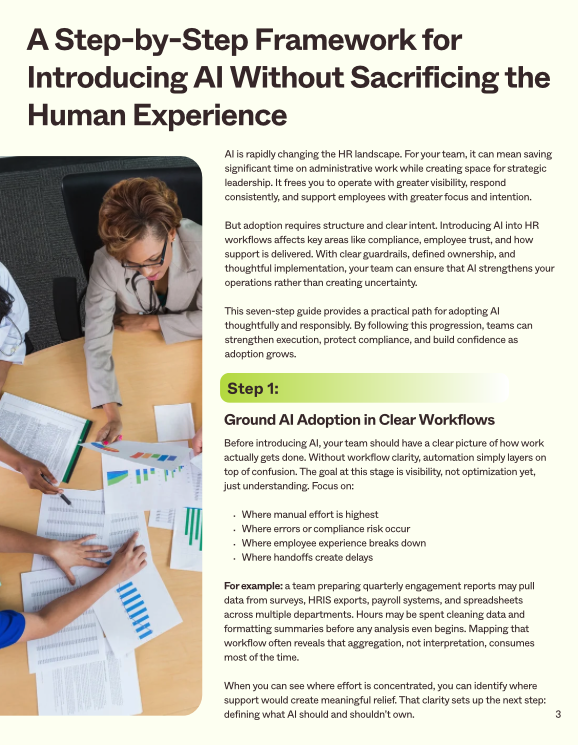 - Define what AI should handle and where HR ownership must remain
